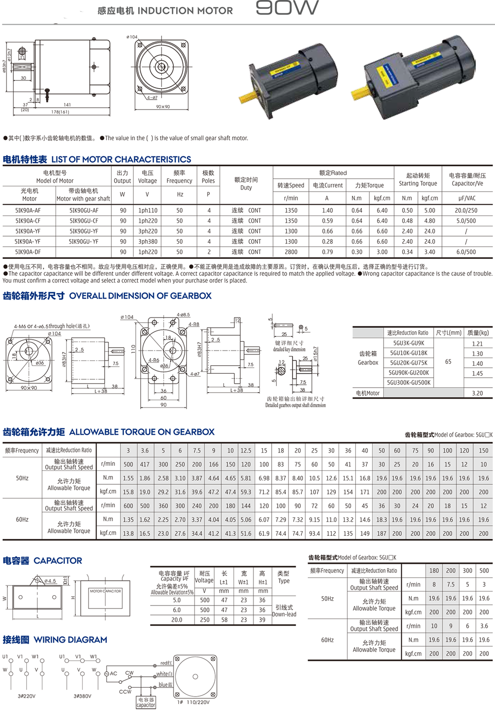 > 90w感应电机